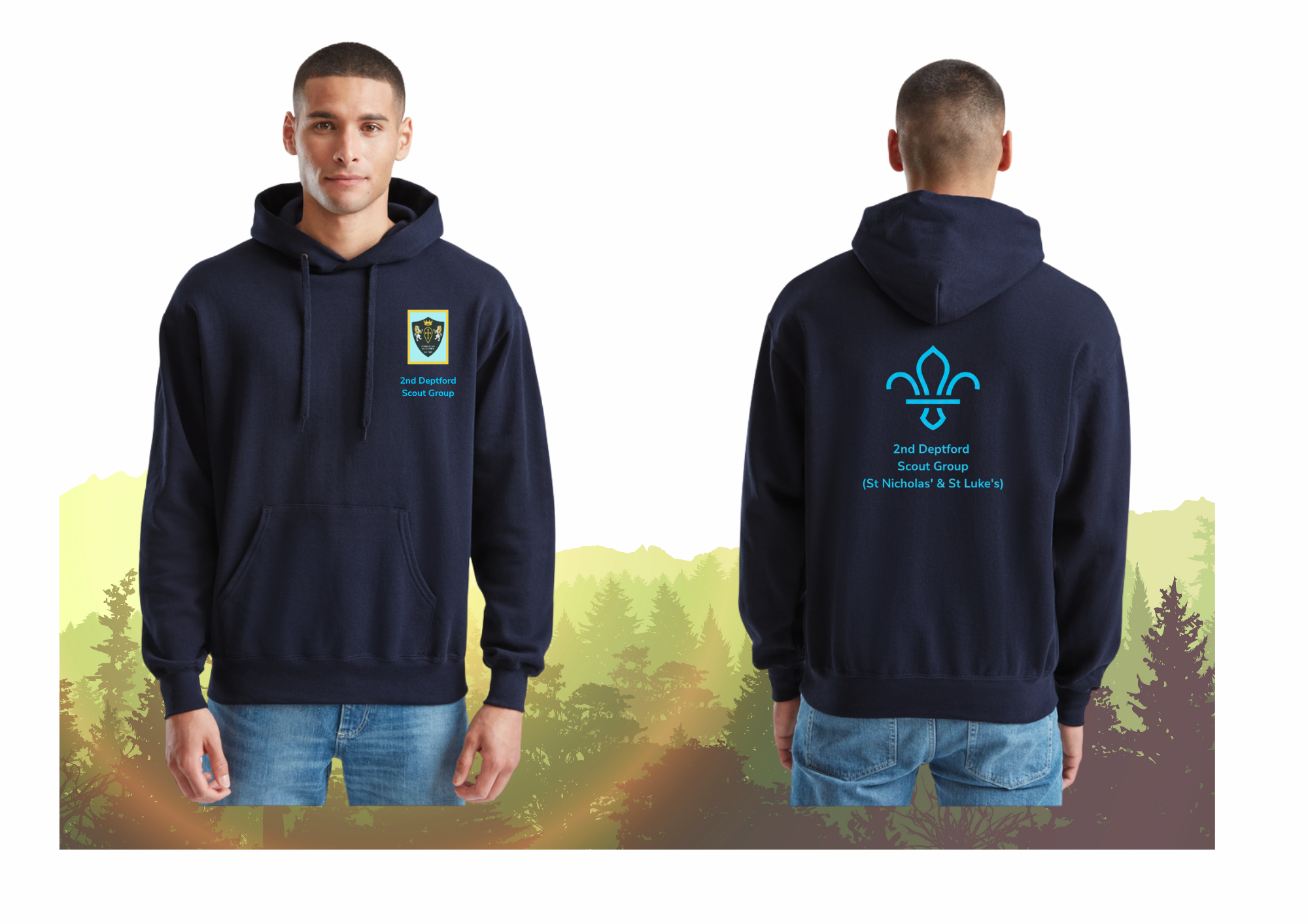 Get cozy and show your support for the 2nd Deptford Scout Group with our stylish 2nd Deptford Group Hoodie! This comfy hoodie features the group logo and name proudly displayed on the front, while the back showcases a large fleur-de-lis along with the group name, making it a perfect way to represent your scouting spirit. Whether you're out on an adventure or just hanging out with friends, this hoodie is designed for comfort and style. Join the 2nd Deptford Scout Group family and wear your hoodie with pride!