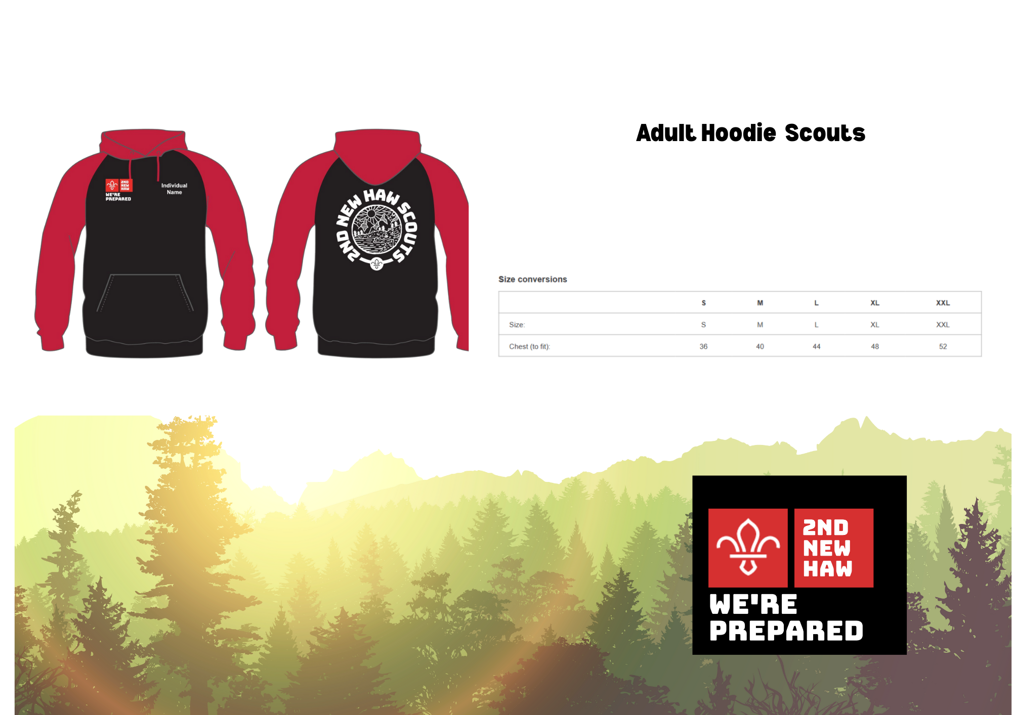 making it a standout piece for any scouting event or outdoor adventure. The front is detailed with our signature "We’re Prepared" logo , while the back showcases a striking, circular 2nd New Haw Scouts graphic. Built for comfort and a great fit, it’s the perfect layer for chilly evenings around the campfire or representing the group in the community.